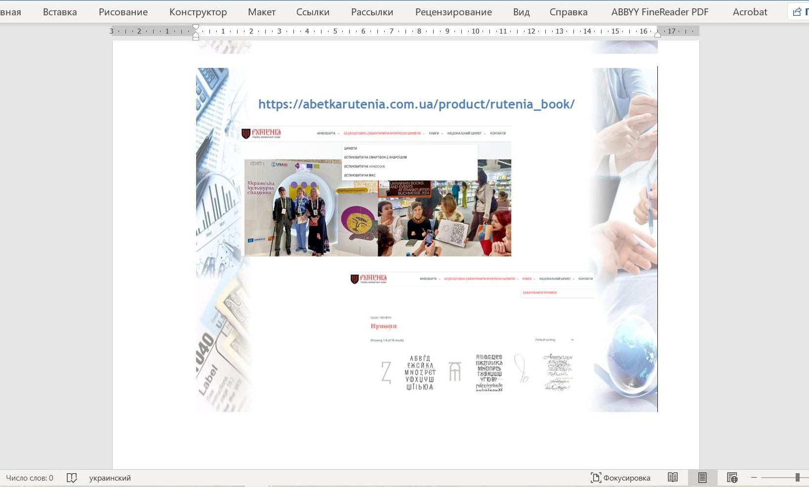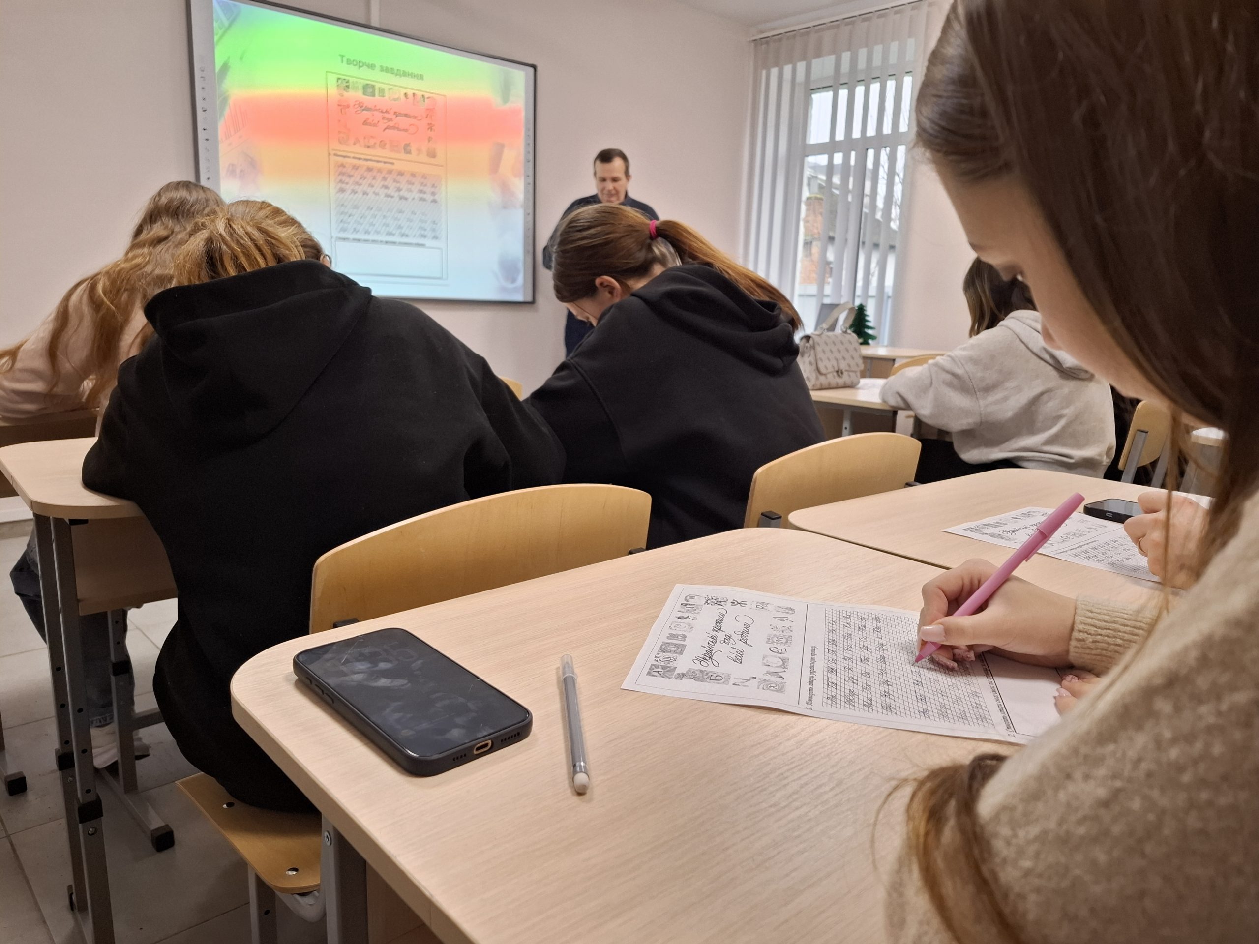Здобувачам освіти було запропоновано виконати творчі завдання щодо відтворення пропису «Рутенія», а також створення шрифтової композиції за власним задумом. Конструктивна дискусія у формі творчого пошуку авторської шрифтової композиції сприяла створенню сприятливої та доброзичливої атмосфери, налагодженню комунікації, а також активного змагання між всіма учасниками заходу.
