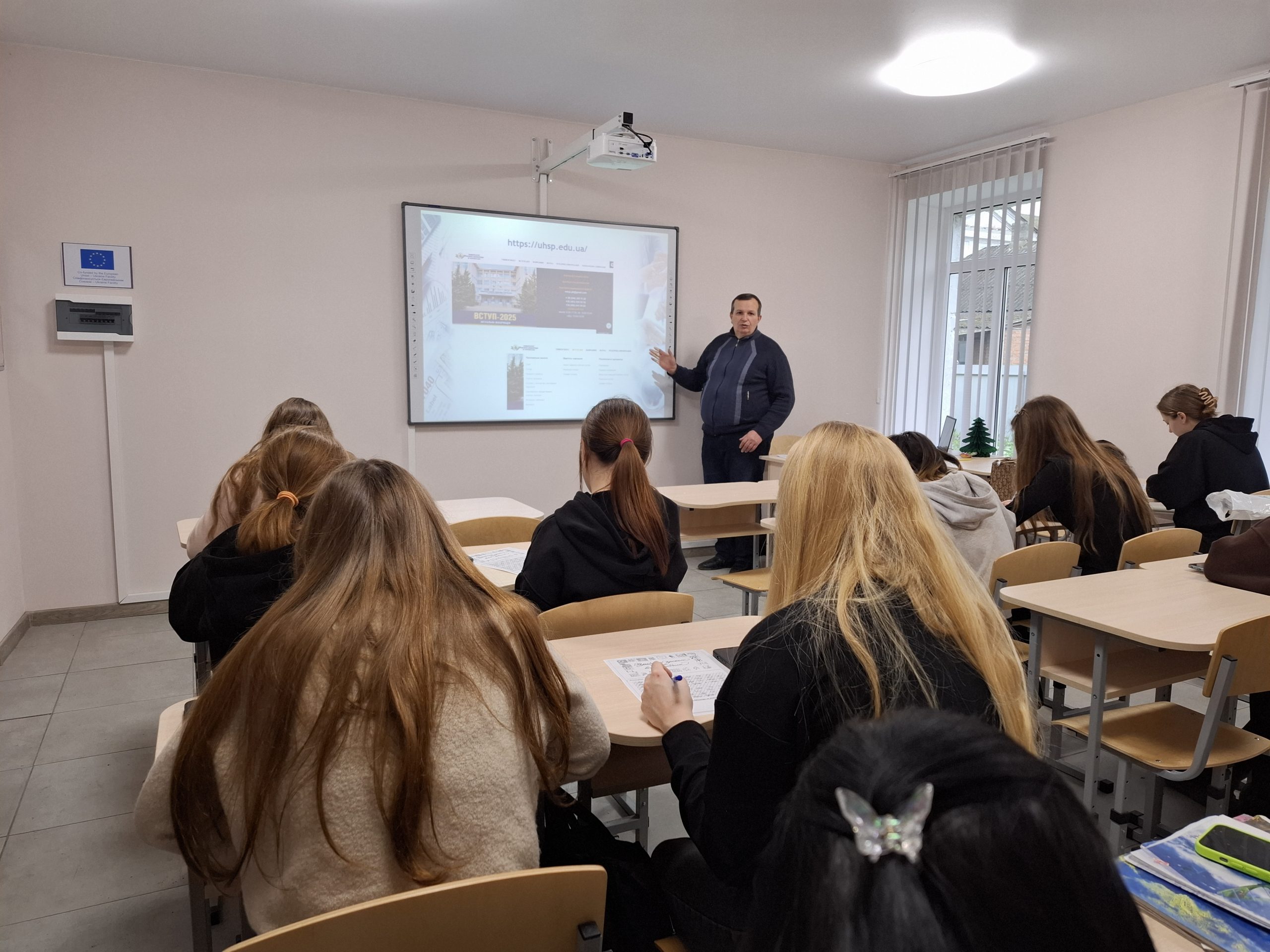 Під час зустрічі присутнім було презентовано освітню діяльність УГСП, роз’яснено умови вступу та особливості навчання за освітніми програмами першого (бакалаврського) і другого (магістерського) рівнів вищої освіти, а також ознайомлено з історією створення та унікальністю українських шрифтів.