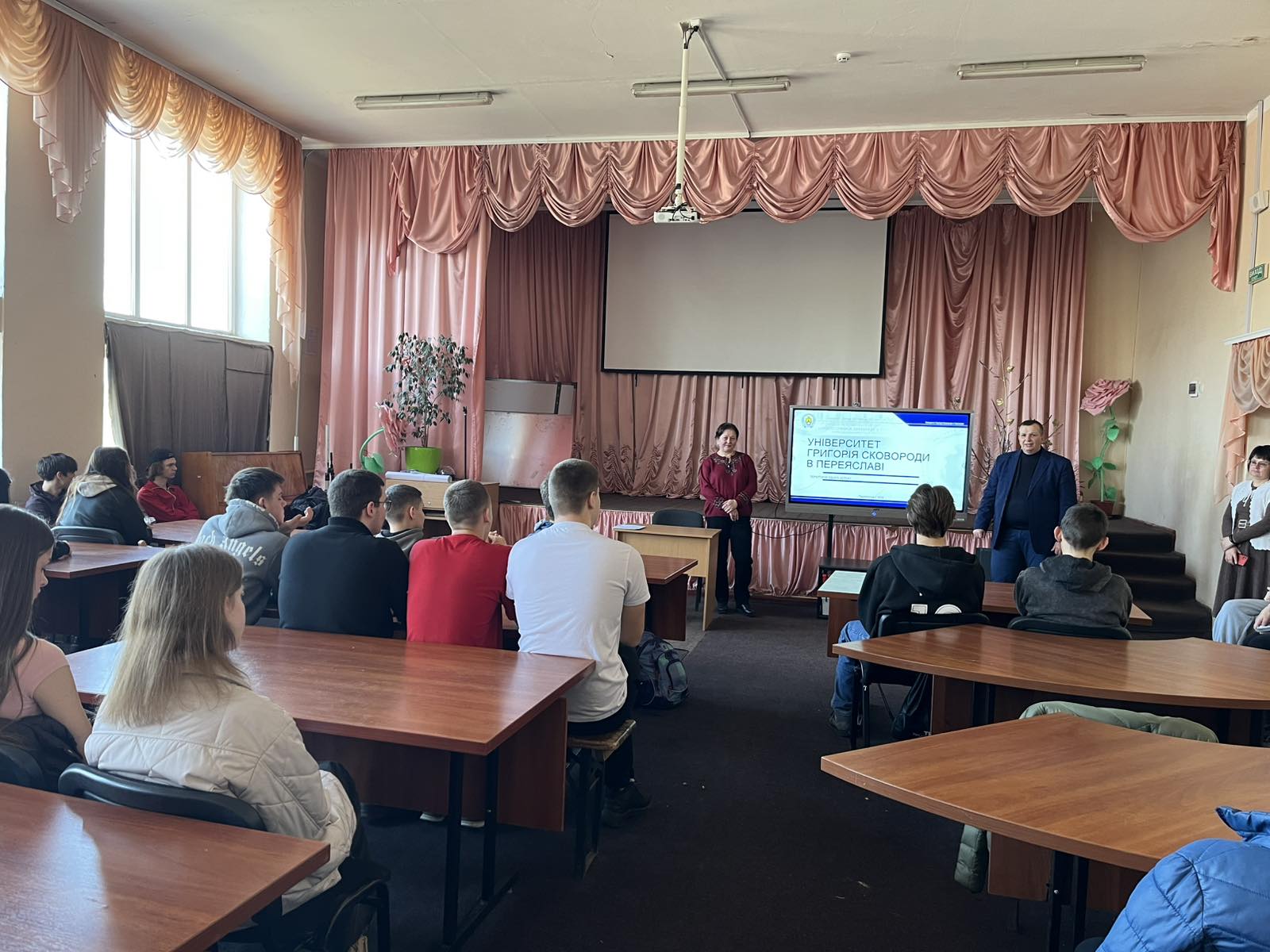 У ході зустрічі старшокласників було запрошено відвідати профорієнтаційний захід «Pereiaslav AbitFest 2026», що проходитиме 19 березня 2026 року в Університеті Григорія Сковороди в Переяславі та детально ознайомитися з особливостями вступу, навчання та майбутньої зростання в сковородинівській родині. До зустрічі долучилися учні випускових класів, вчителі-предметники, класні керівники та адміністрація ЗЗСО.